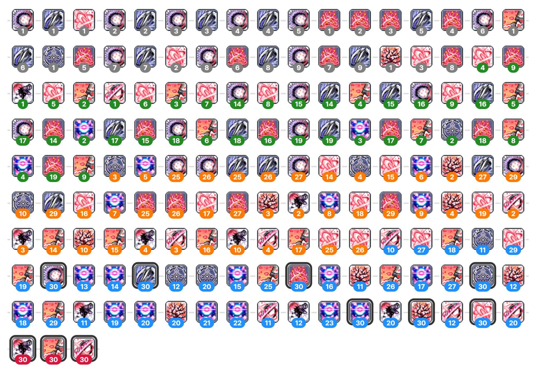 | 補助武器 | Lv.100 | – | ボスダメ30% / 攻撃 or 魔力6% | – | ユニ書利用 アディエピ書利用 | ★ |