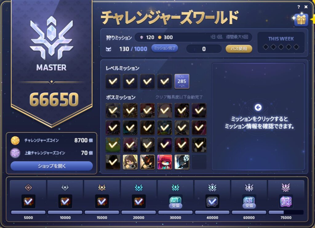 | ミッション一覧 | 内容 | ポイント | コイン | 上級コイン |